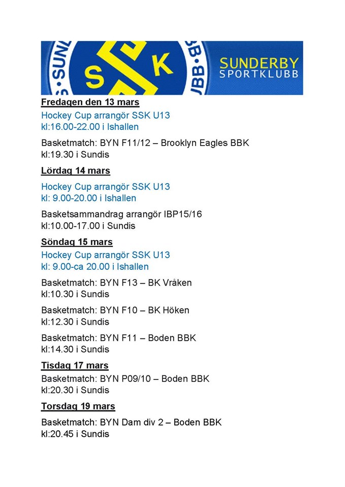 | Basket P-09/10 Älvsbyns basketbollklubb (hemma) | 19 mar, 20:00 |