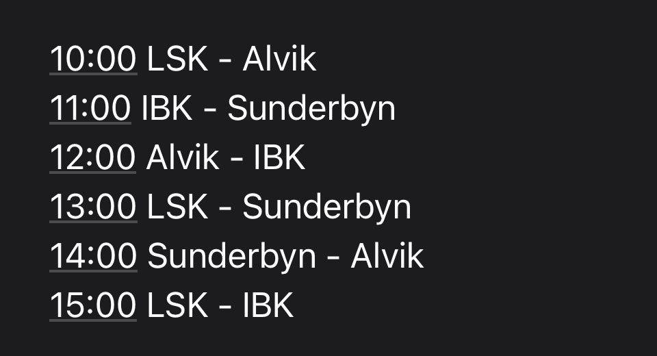 Hej Jag har gjort färdigt spelschemat för den 18/11. Vi samlas 9.45 i Sundis och ställer i ordning hallen. Sedan kan vi göra upp ett schema för fiket. För att fikabrödet ska räcka så uppskattar jag att alla behöver ta med ca. 20 bitar. Resten köper jag in. Mvh Andreas Basket F-15 12 nov 2023 0kommentarer